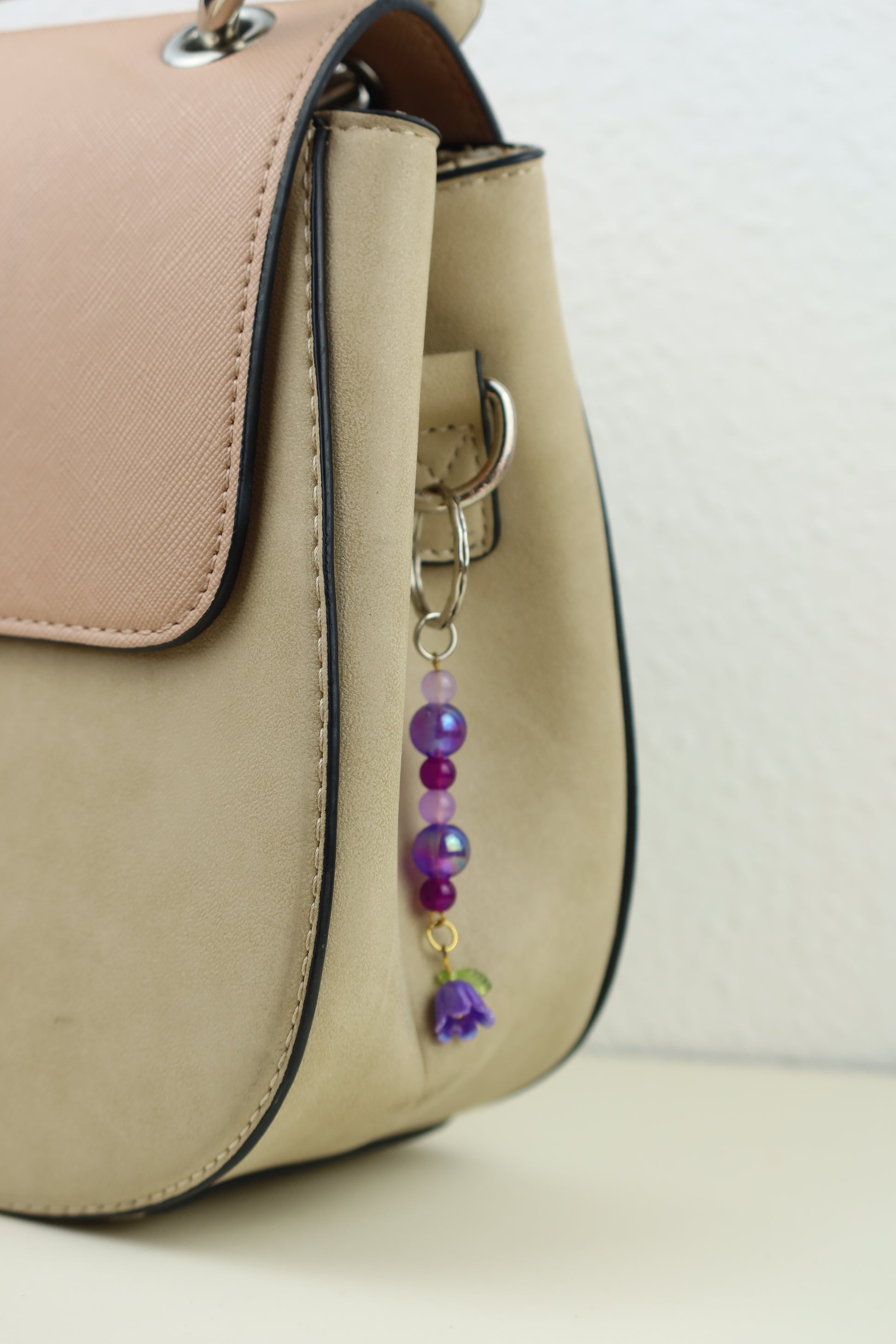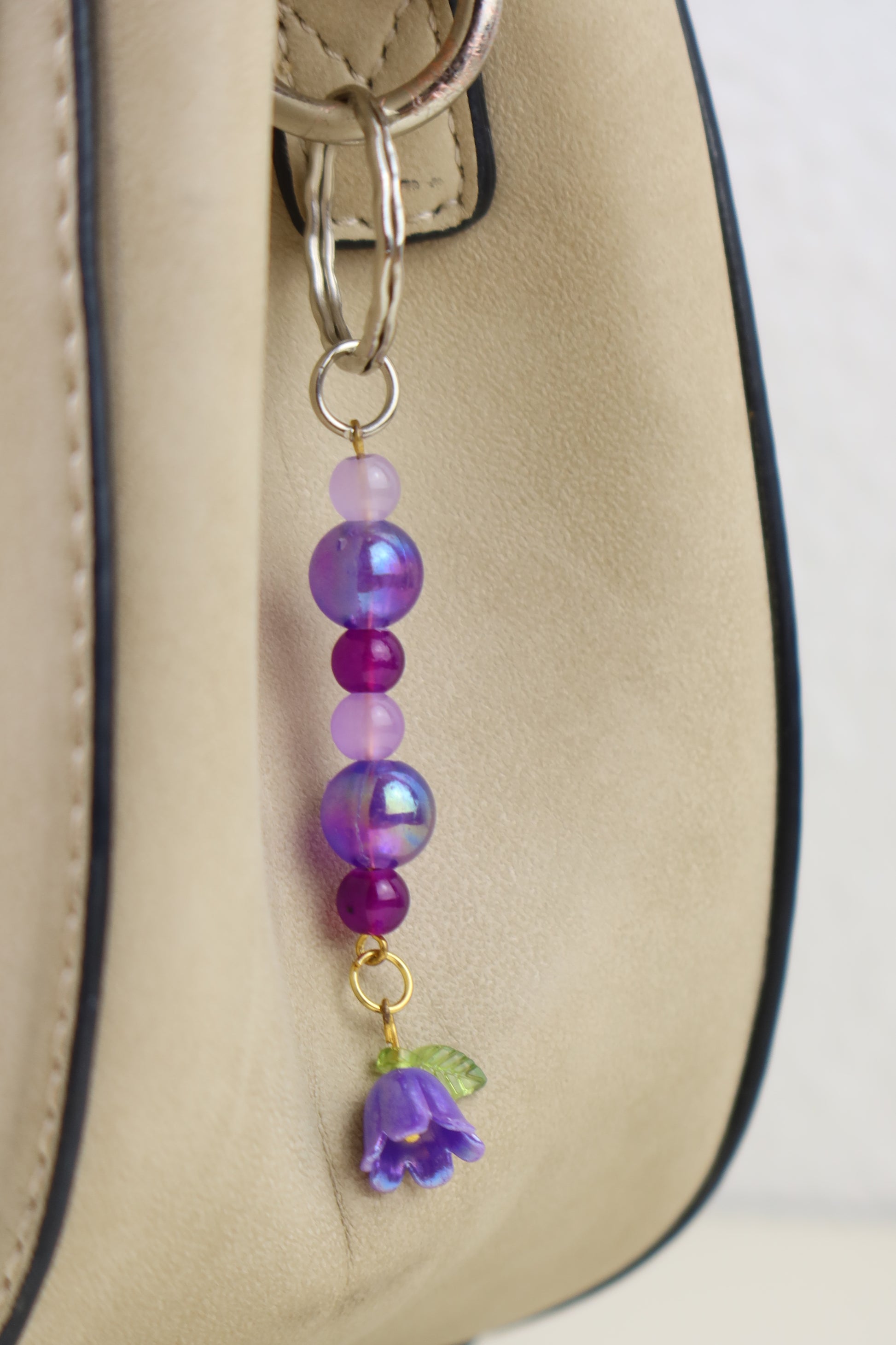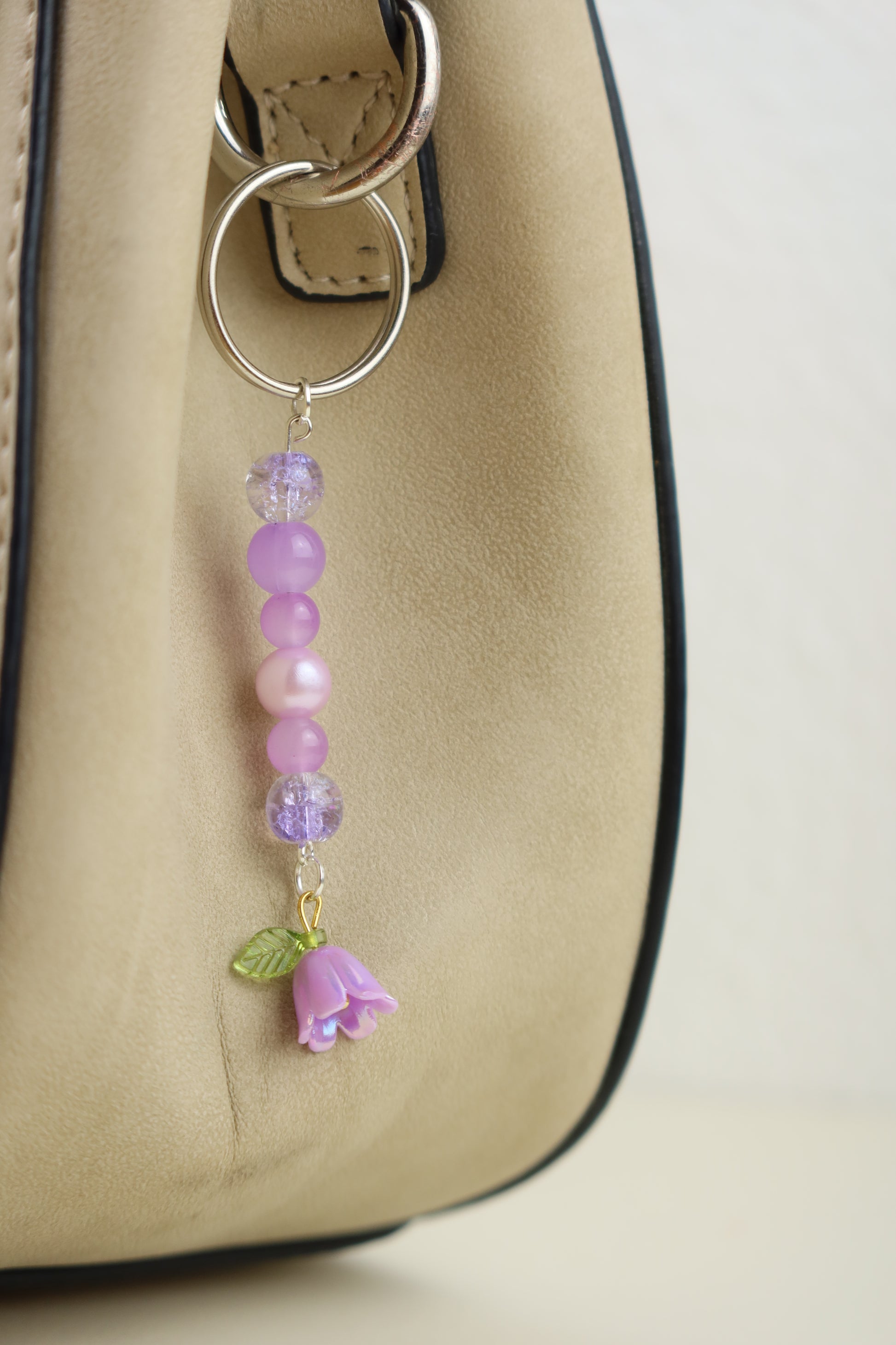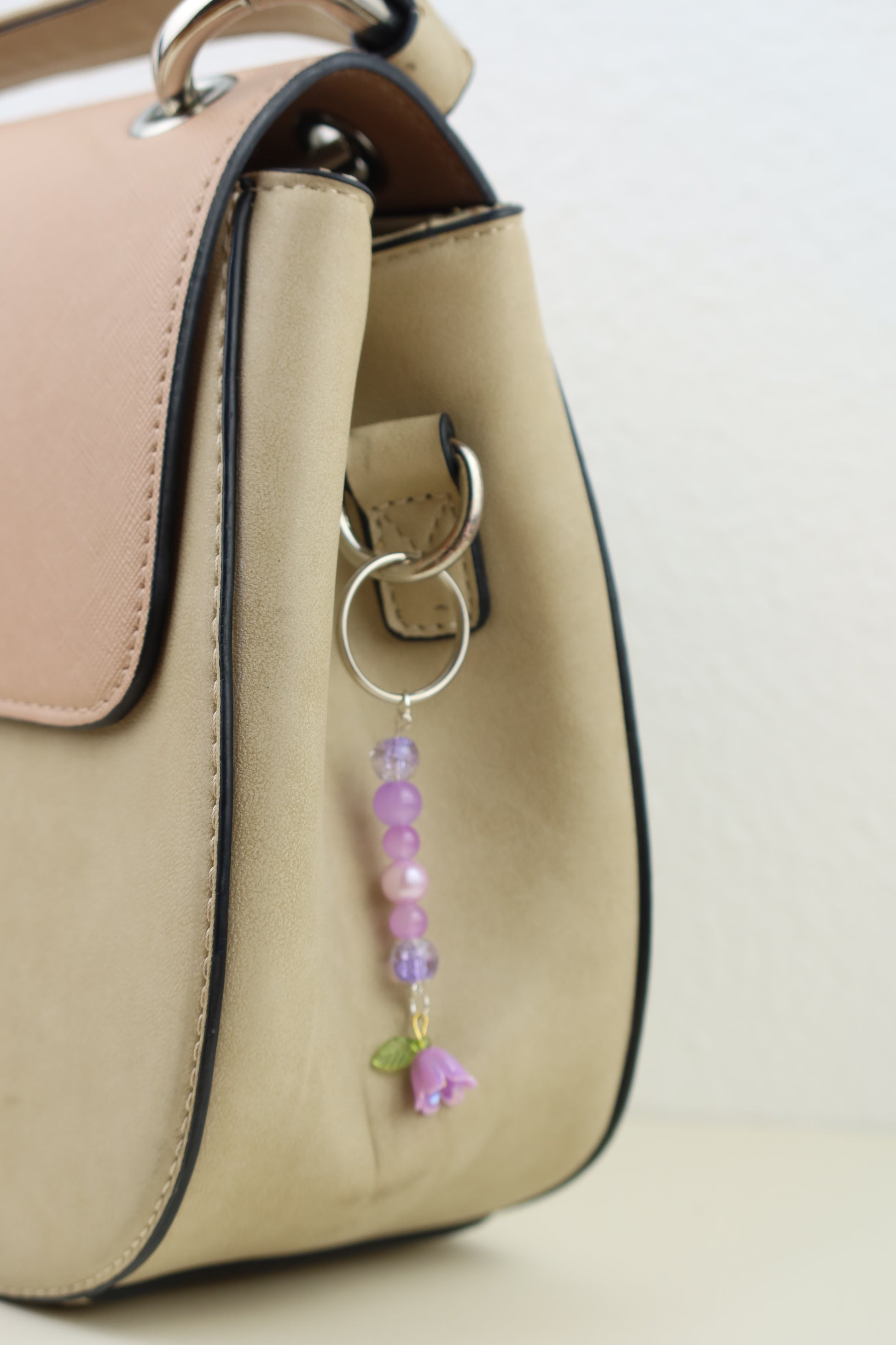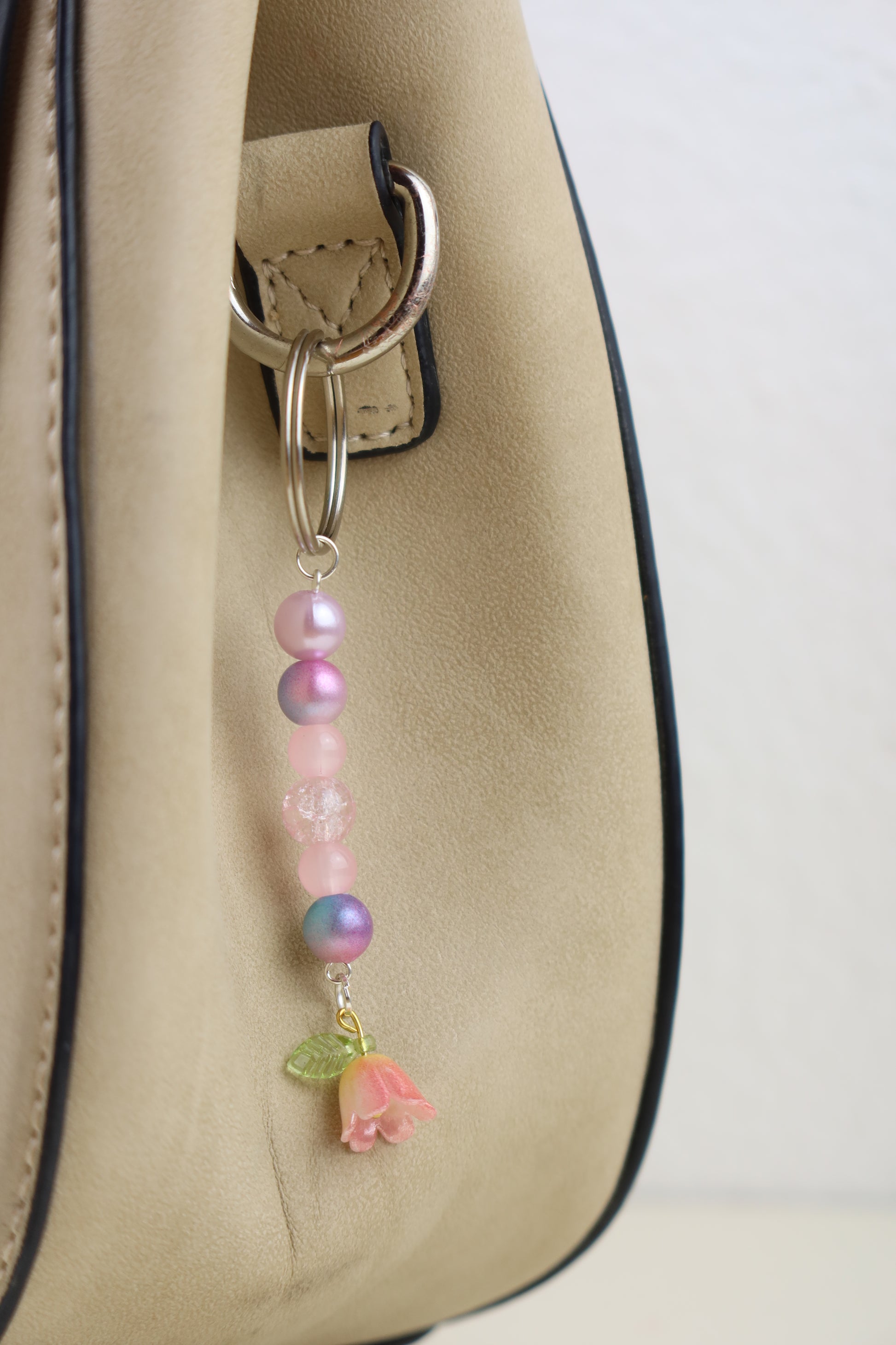 Frühlingsfreude – Ein lebhafter Schlüsselanhänger mit bunten Perlen in Lila, Rosa, Gelb, Weiß und Blau, verziert mit wunderschönen Tulpen-Anhängern! 🌷💜💖💛💙 Die fröhlichen Farben und die blühende Eleganz der Tulpen verleihen dem Anhänger eine verspielte, frische Note, die Frühlingsgefühle weckt.