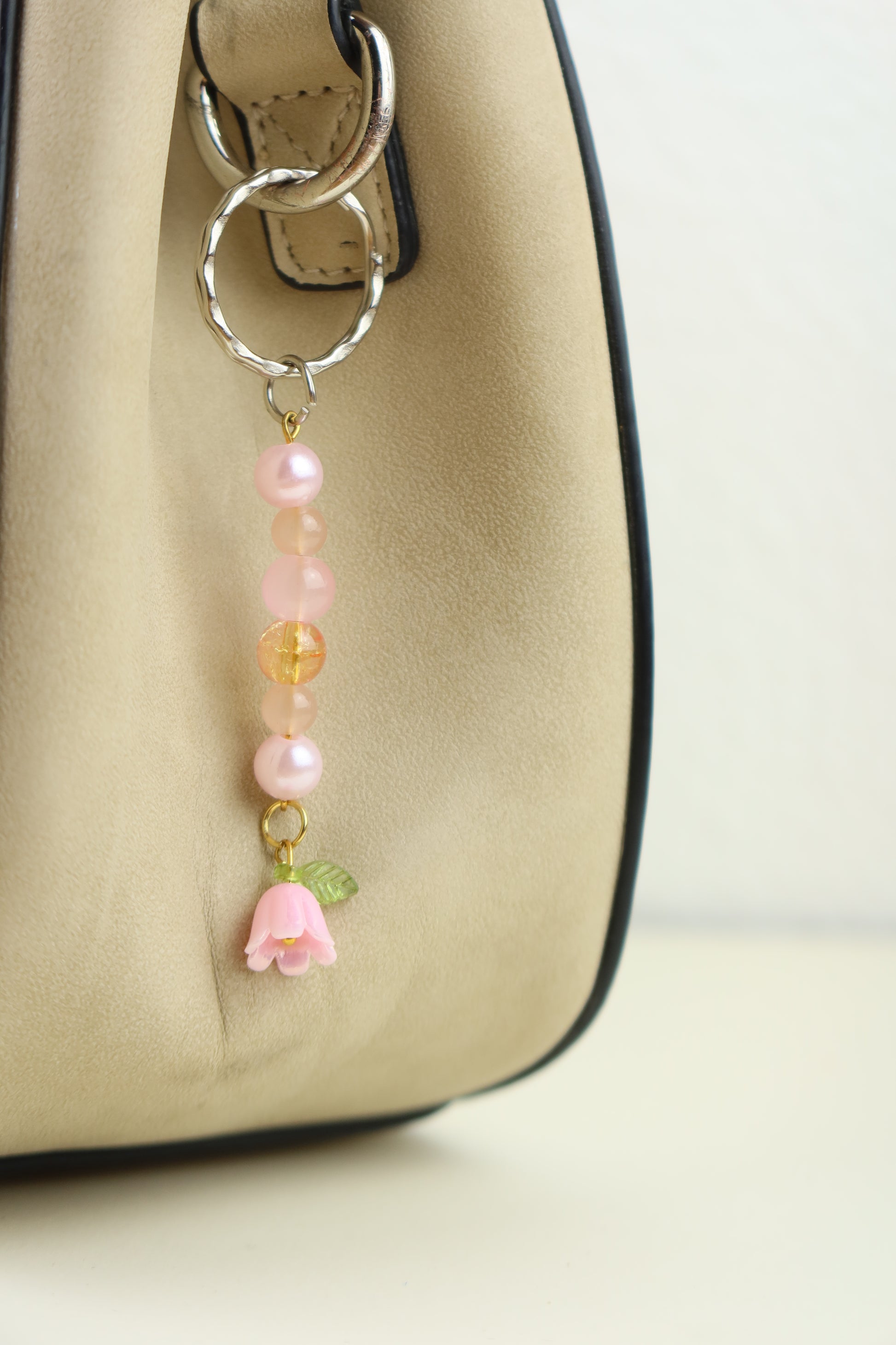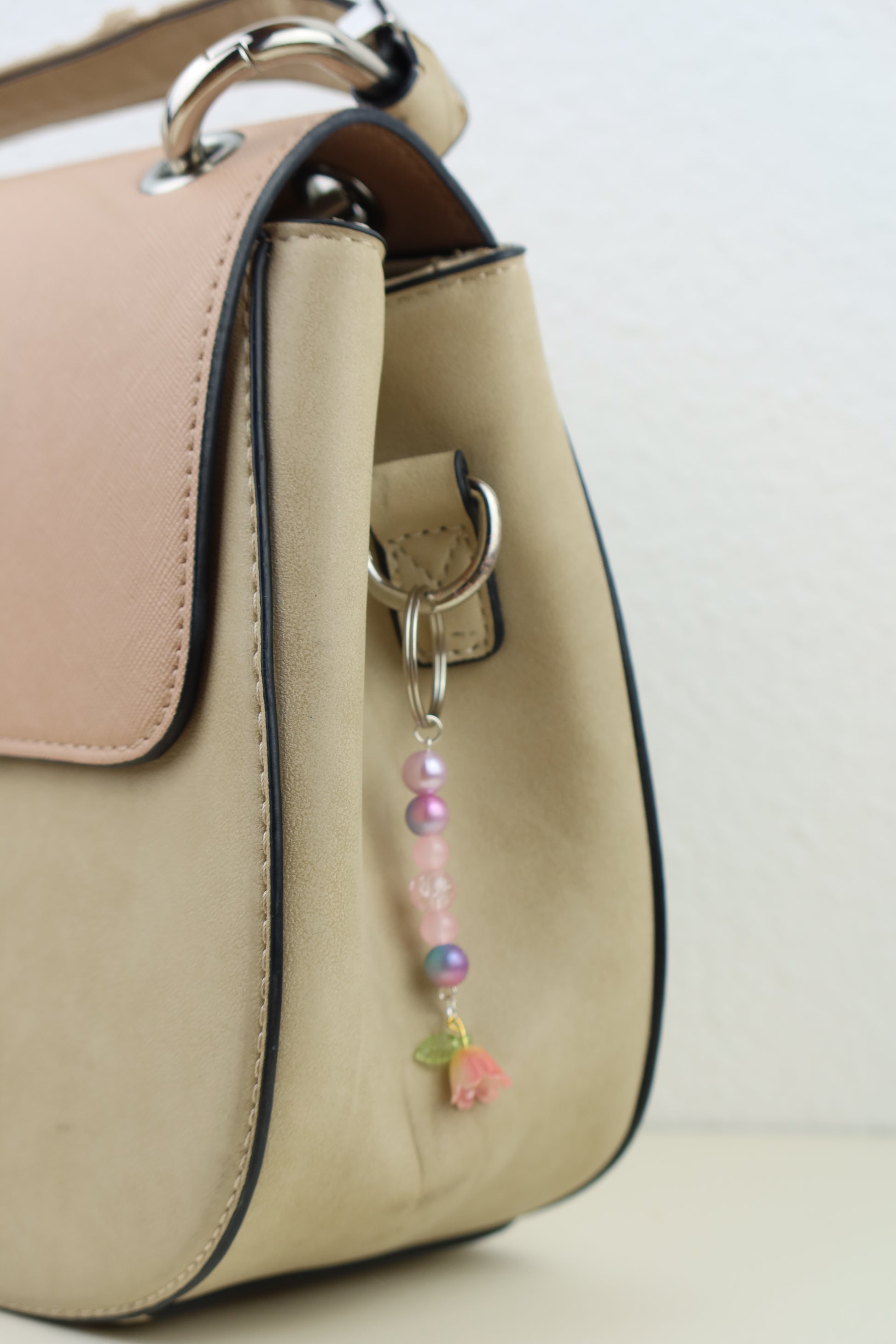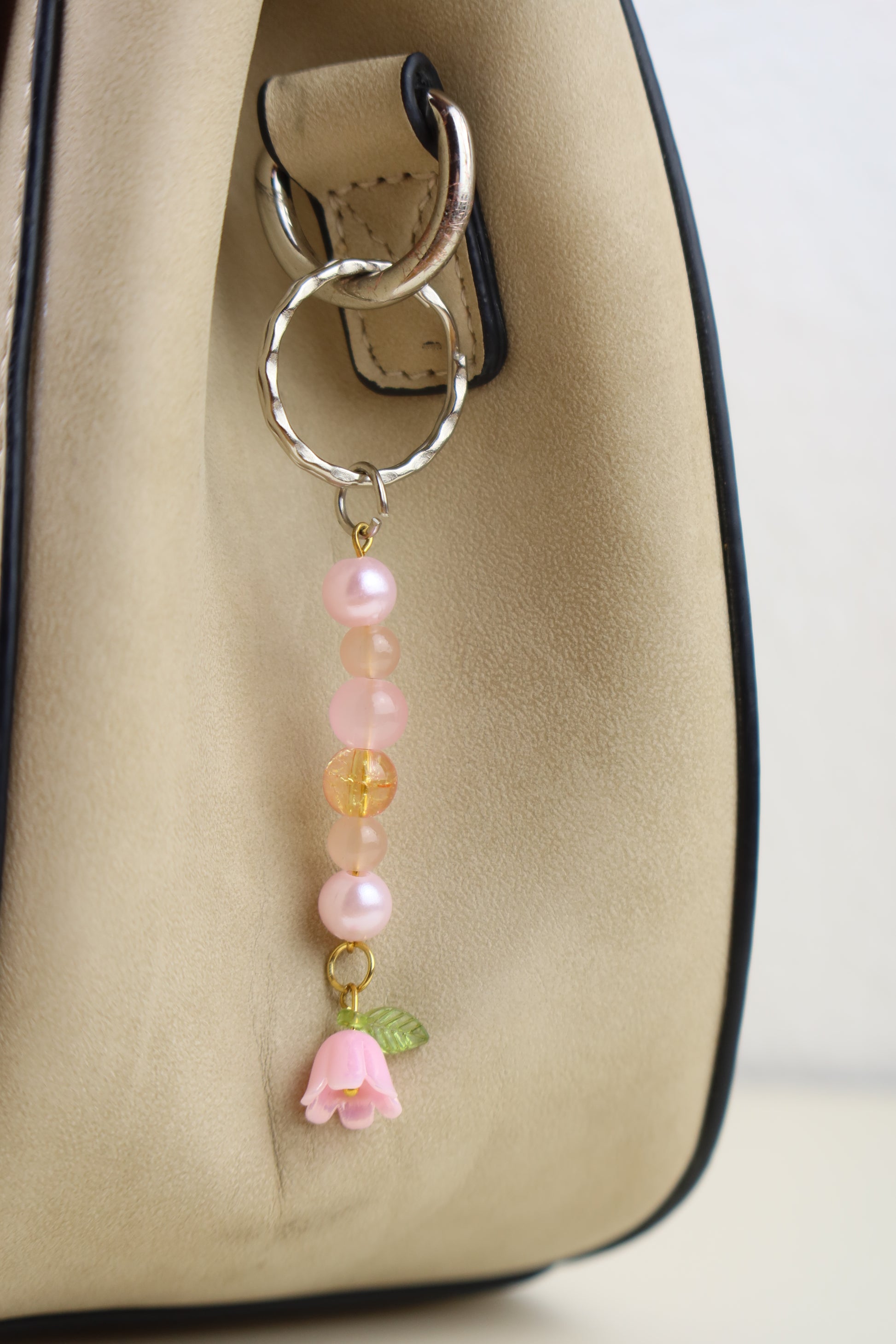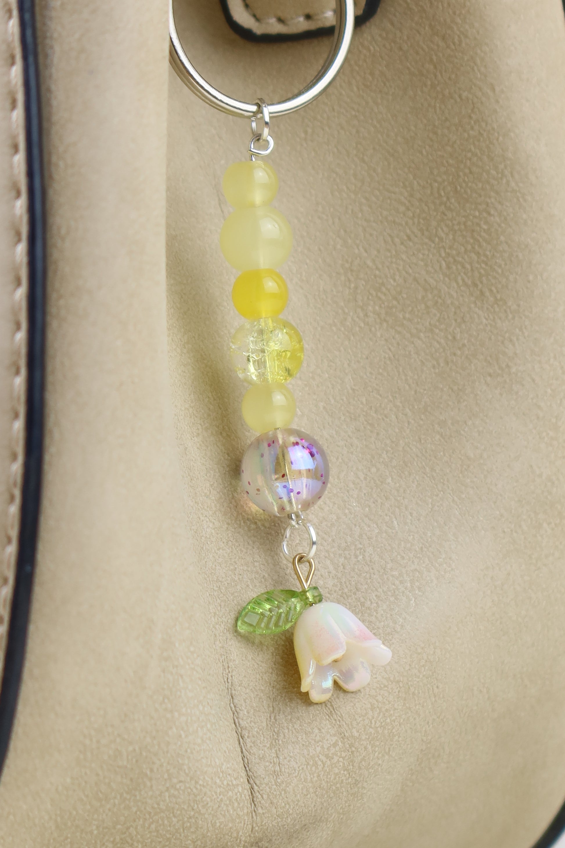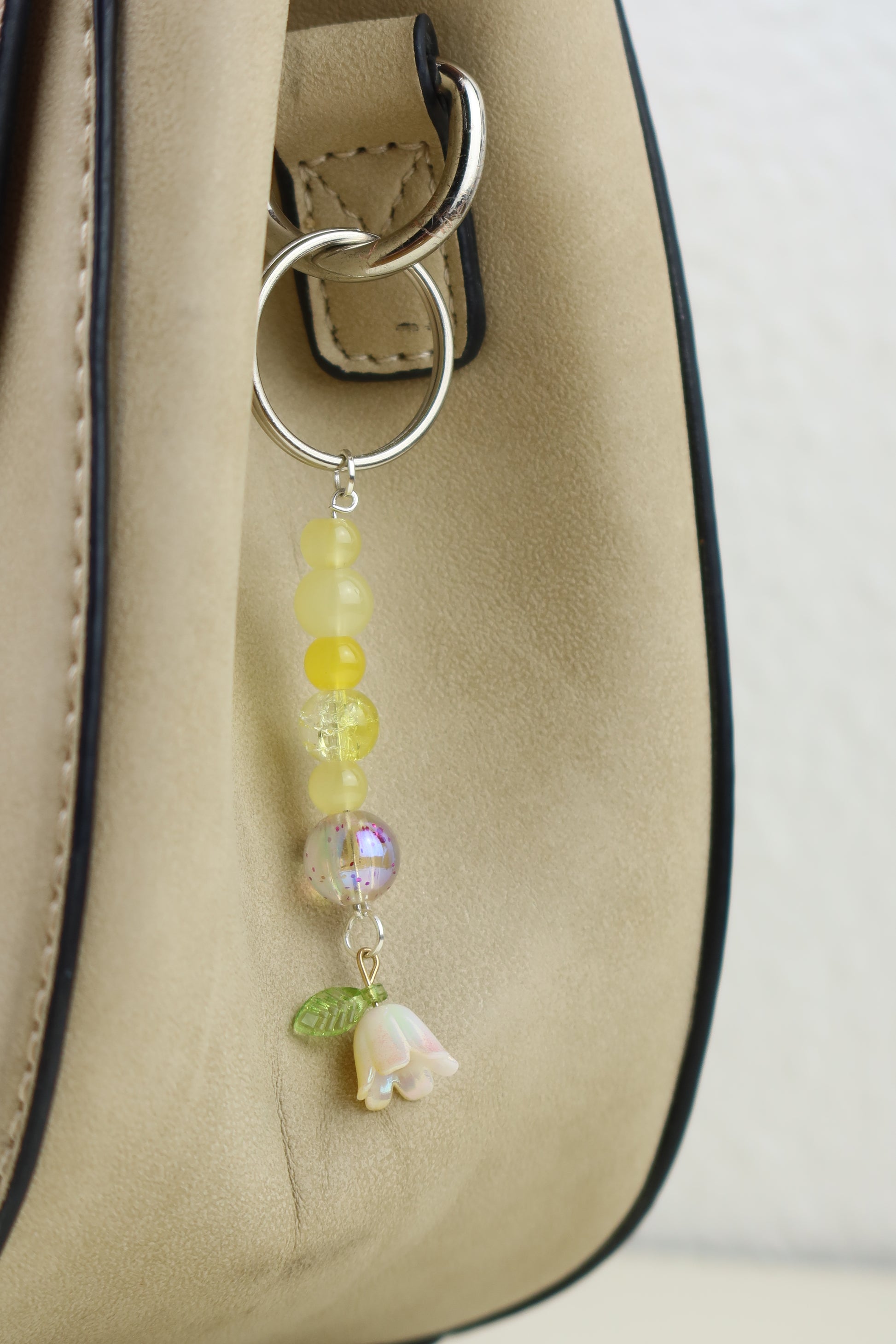 Frühlingsfreude – Ein lebhafter Schlüsselanhänger mit bunten Perlen in Lila, Rosa, Gelb, Weiß und Blau, verziert mit wunderschönen Tulpen-Anhängern! 🌷💜💖💛💙 Die fröhlichen Farben und die blühende Eleganz der Tulpen verleihen dem Anhänger eine verspielte, frische Note, die Frühlingsgefühle weckt.